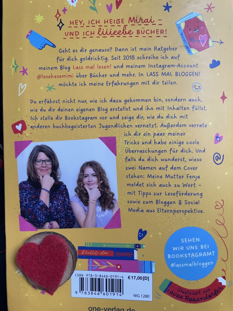 Du liebst Bücher, und möchtest einen Buchblog machen? Dann ist dieses Buch für dich perfekt. Mirai erklärt dir Schritt für Schritt wie du zu deinem eigenen Blog kommst, was Bookstagram ist, oder wie du deine Stimme erheben und damit einen kleinen Schritt zu einer besseren Welt machen kannst. Warum da noch ein zweiter Name steht? Mirai’s Mutter Fenja bringt immer wieder ihre eigene Meinung als Mutter mit ein und gibt Tipps für die Eltern (wie ich finde). Du erfährst ebenfalls was es mit „Booktok“ „BookTube“ oder einem „buchigen“ Podcast auf sich hat, oder wie du schnellstmöglich an neuen Lesestoff kommst. Sie erklärt nicht nur wie du mit deinen Buchrezensionen durchstarten kannst, sondern auch, wie du auf DICH achtest und dich nicht übernimmst. Eine Checkliste was du alles auf einer Buchmesse mitnehmen solltest darf natürlich auch nicht fehlen.